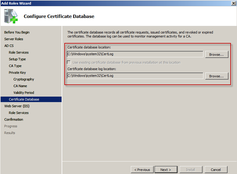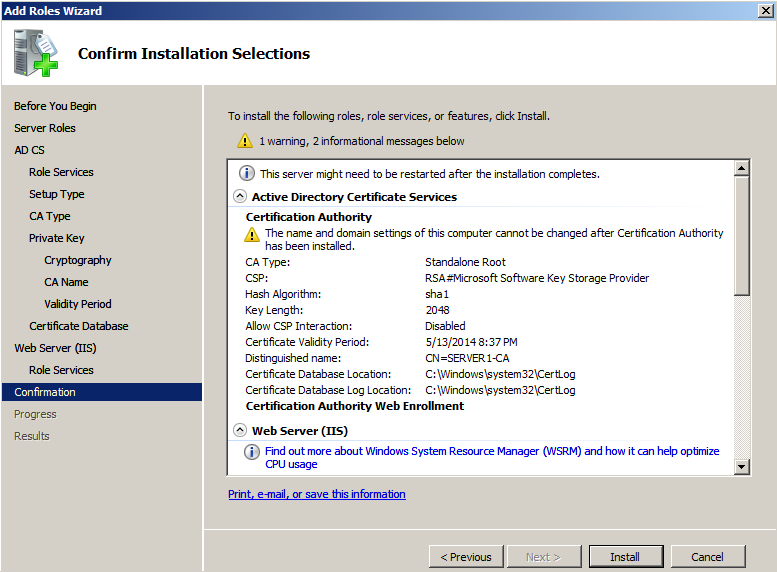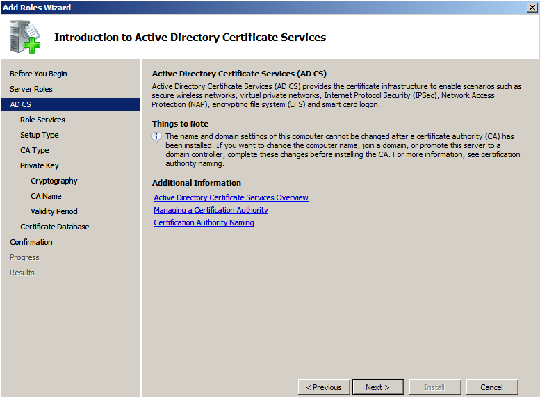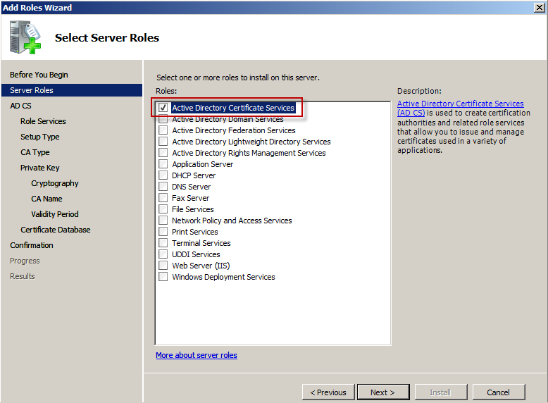 Instalace Certifikační autority v operačním systému Windows Server 2008